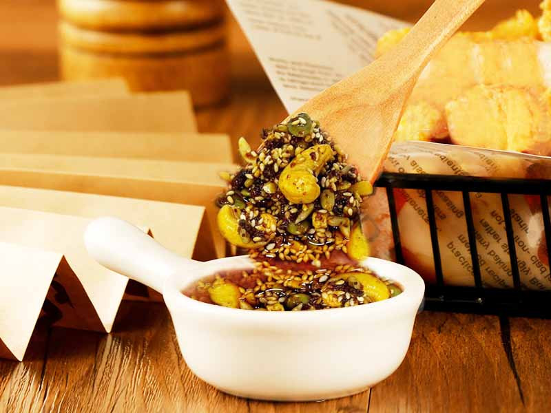 目前世界公認且連日本著名腦科醫學博士 山嶋哲盛都推薦食用的健康植物油就是 玄米油。呷富貴-傳家養生椒麻堅果辣醬,選用 高品質頂級玄米油,耐高溫、不易產生毒素、 高營養,富含維生素B1、E,更具有獨特抗氧化力 的穀維素能有助於減少自由基的產生, 玄米油滴滴營養健康,呷富貴堅持給您最好。